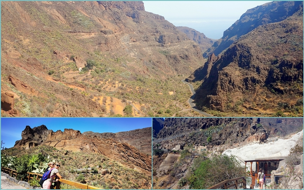 Pierwszego dnia obeszliśmy okolicę, rano był spacer z fantastycznym lunchem w uroczym miasteczku Santa Lucia de Tirajana, po południu przeciwne zbocze górskie z kanionem, domami bezdomnych (?), znaczy ludzi żyjących na dziko, bez dojazdu, mających domy z czego się da i elektryczność z kilku paneli słonecznych. Ciekawostką był tam słoneczny rożen - czego to człowiek nie wymyśli. W kontraście do może szczęśliwej biedy, były tam też piękne wille wśród winnic, a w oddali nawet zalew.